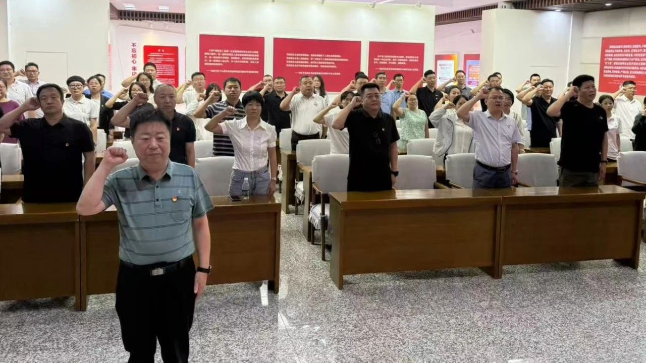 最后,全體黨員干部心懷崇敬,整齊列隊,面對黨旗,高舉右拳,重溫入黨誓詞。鏗鏘有力的誓言,激勵大家在今后工作中牢記黨員身份,踐行初心使命。