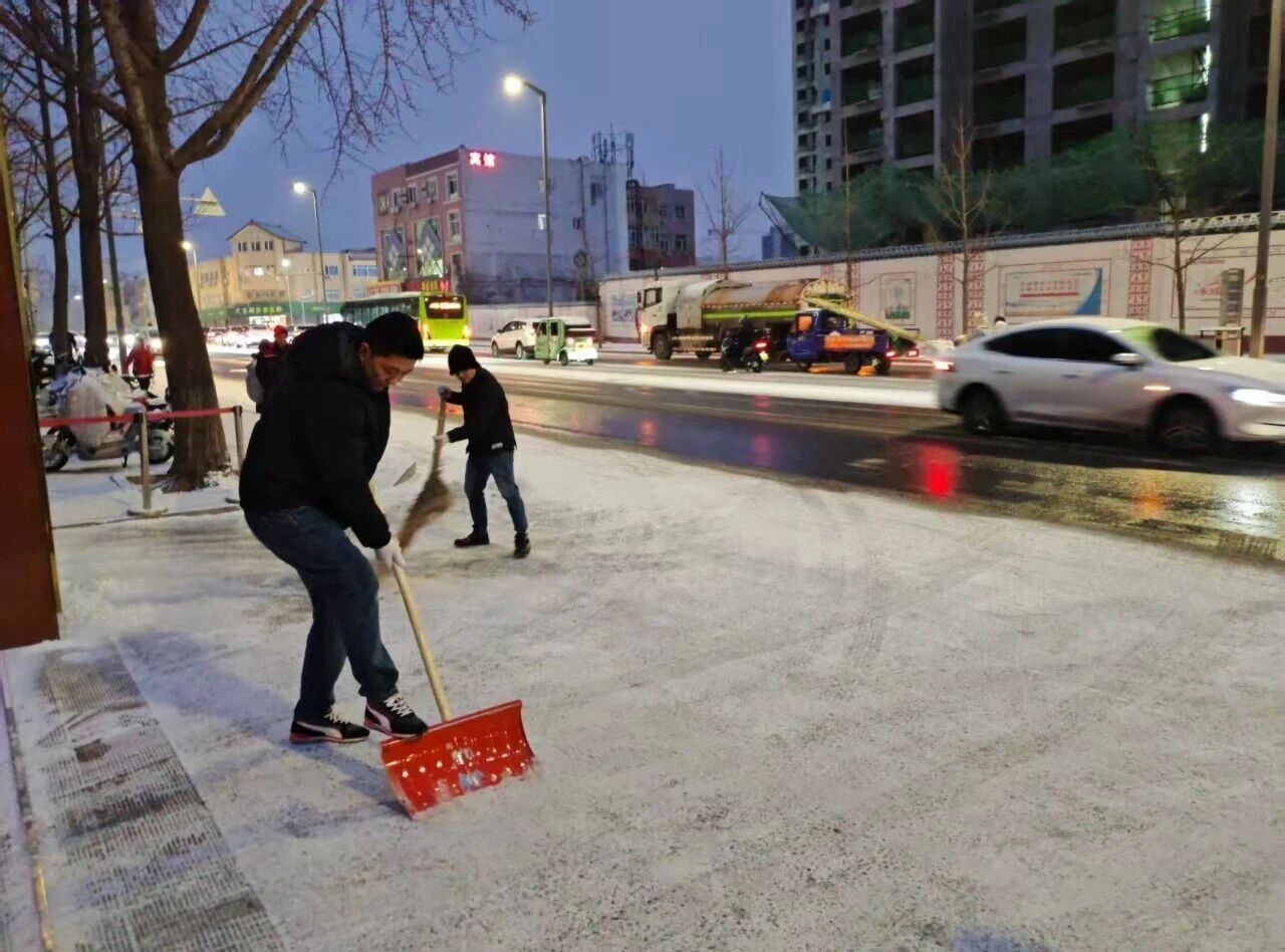 公司提前對各類應急物資進行清點與補充,備齊除雪鏟、鐵鍬、掃帚等工具,確保“拉得出、用得上”。公司掃雪小組奔赴通順路(復興東街—濱河北路)責任路段,將掃雪范圍向公共區域延伸,實行“隨下隨掃”,在降雪期間確保一條寬度不少于1米的行人通道,完成責任道路清掃后,掃雪小組繼續清掃自身區域和門前三包區域。經過數小時的"浴'雪'奮戰",積雪清理完畢,實現了“雪停路凈”的目標,以實際行動踐行國企擔當。
