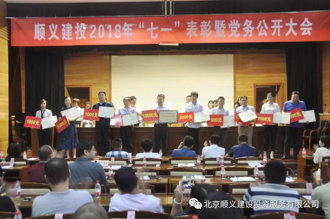 2018年6月29日,北京順義建設投資服務有限公司召開了2018年“七一”表彰暨黨務公開大會。黨委副書記、經理姚仕松主持會議。公司黨委班子成員、國資委派駐專職監事、各子公司黨支部書記、總公司各部室負責人及全體黨員職工、入黨積極分子參加會議。