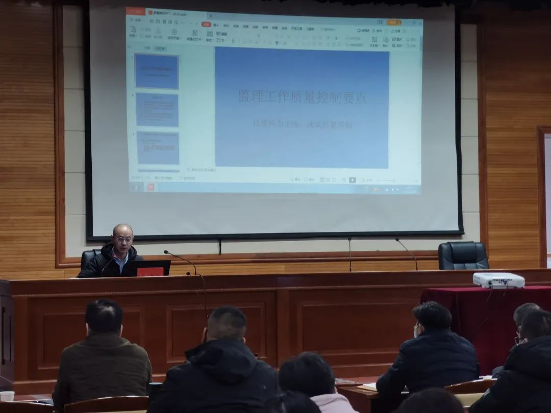 順金盛監理公司楊友濤同志以資料為主線,淺談質量控制。從國家層面、監理公司管理層面以及項目部層面的質量管控要點做了深入的分析與講解。培訓內容結束后進行了評測環節,檢驗了大家的培訓成果和收獲 。